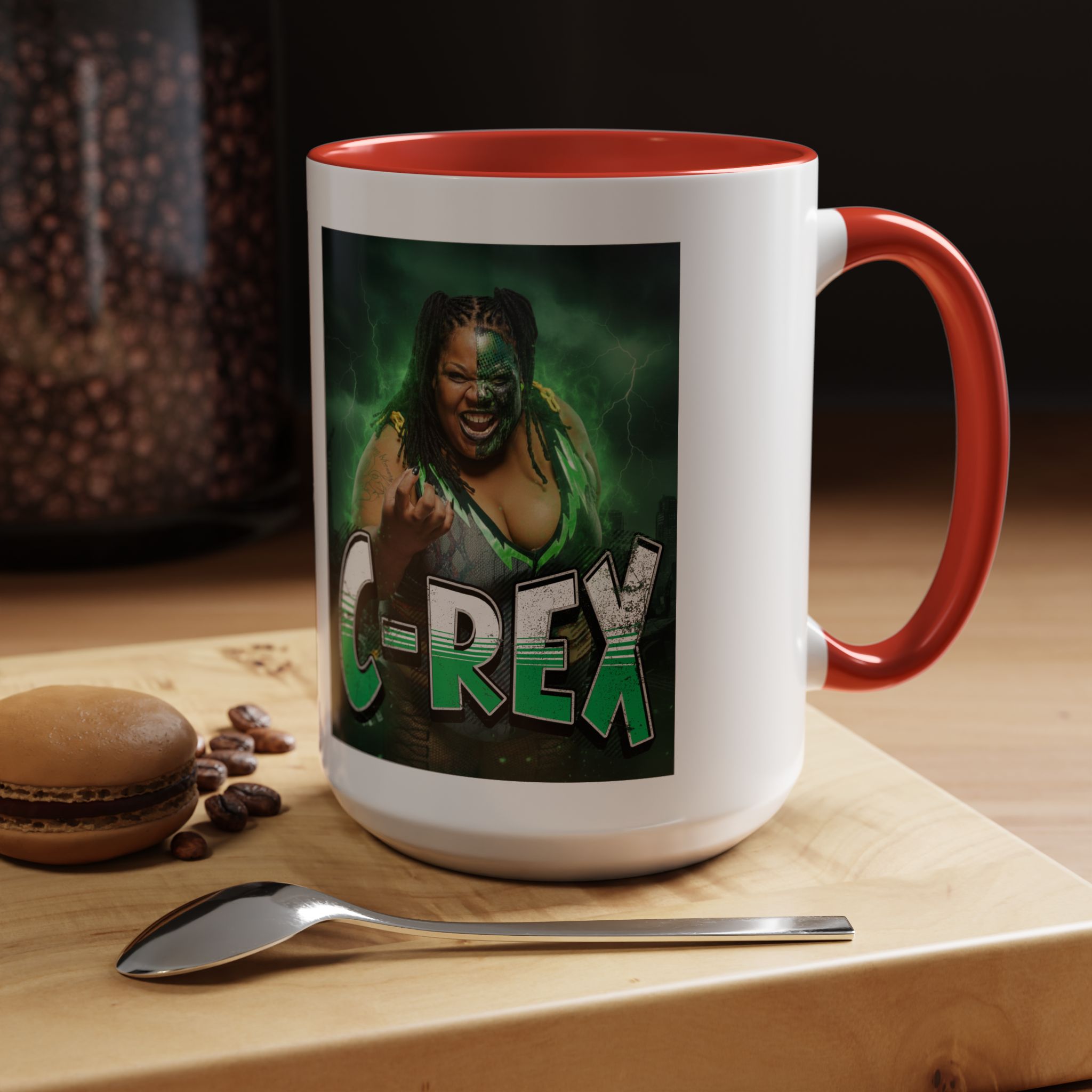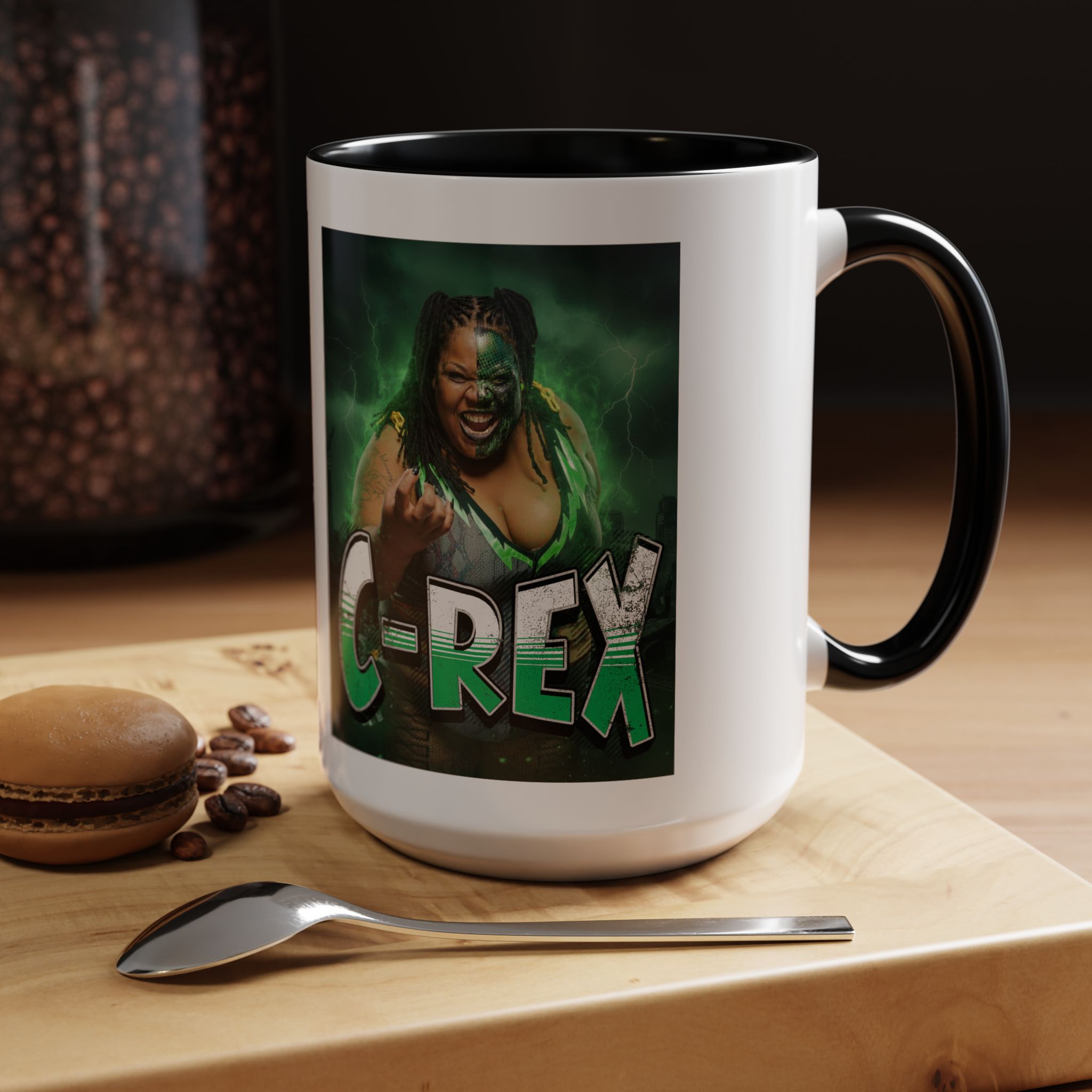 This vibrant ceramic mug brings bold personality to every morning ritual. Thick glossy walls hold heat while a colorful interior and handle create a striking contrast to the white exterior. A dramatic green-themed graphic wraps the mug, giving it an energetic, edge-of-your-seat vibe that lights up a desk or kitchen counter. Durable enough for daily use, it stands up to microwave reheats and dishwasher cycles without fading — a lively companion for coffee, tea, or whatever fuels your day.
