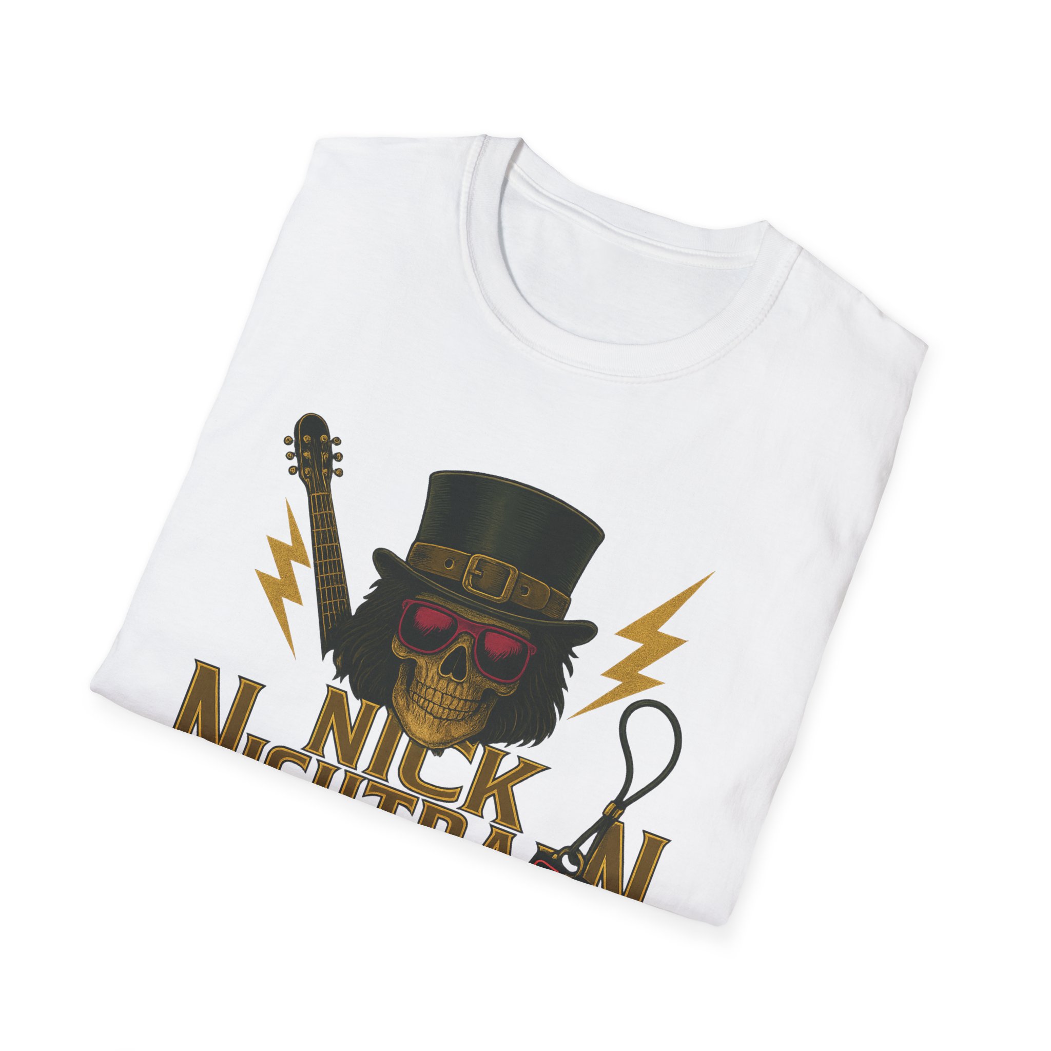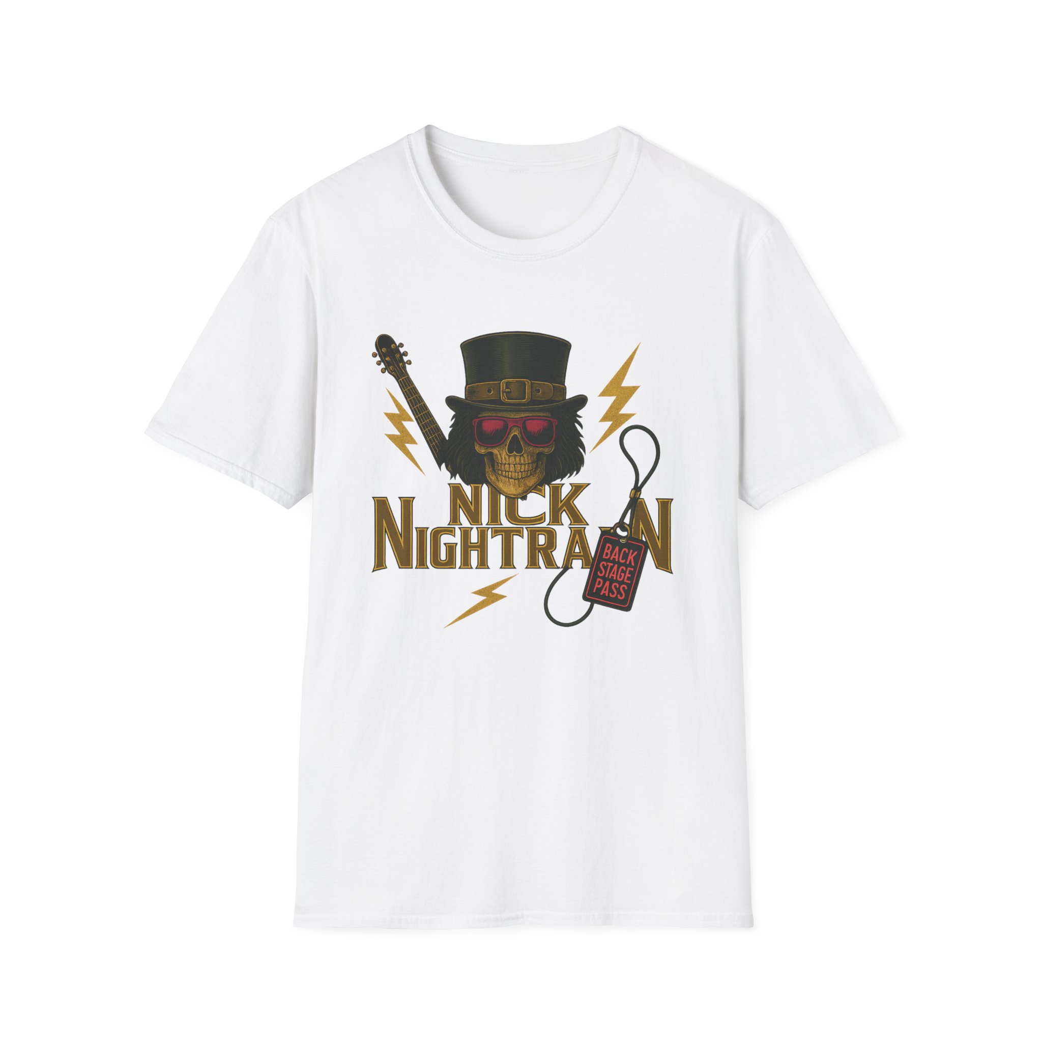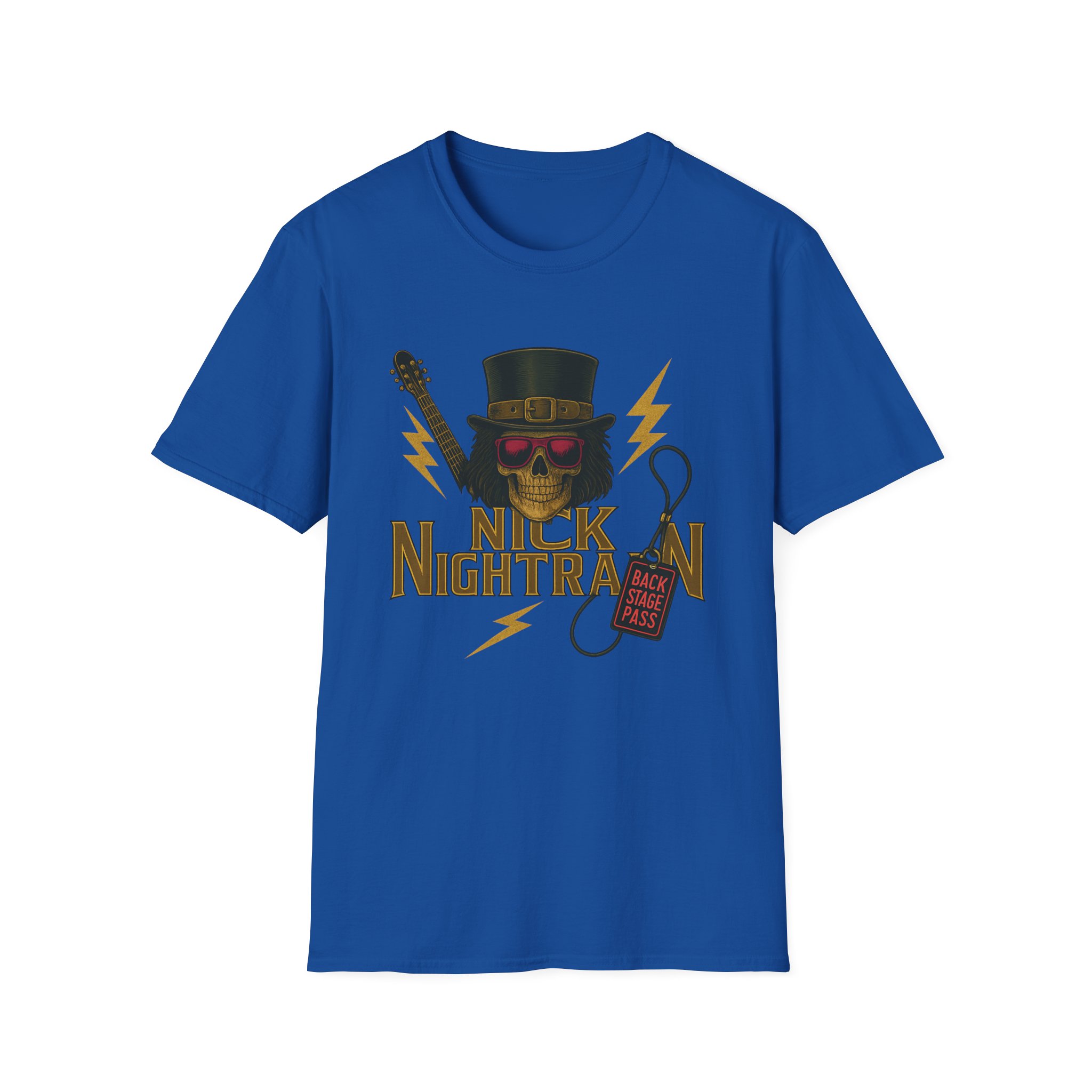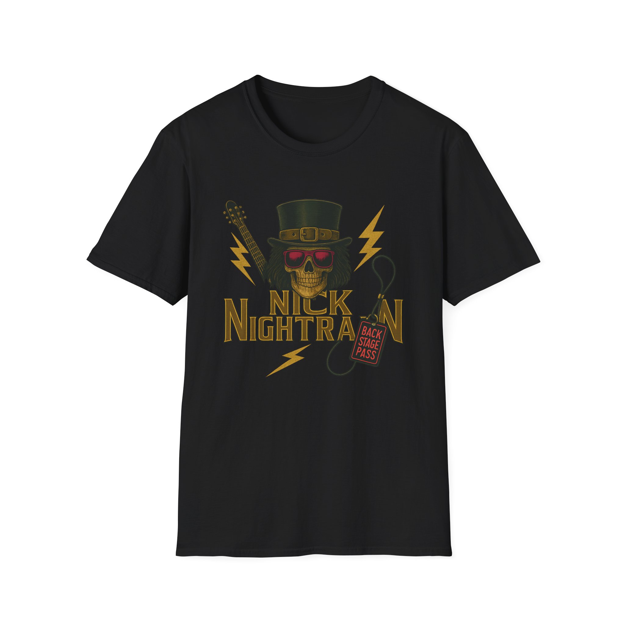 This lightweight cotton tee carries a gritty, late-night rock vibe — a skull in a top hat, a battered guitar and a glowing tour pass come together in bold, vintage illustration. Wear it to shows, rehearsals, or when you want that lived-in rocker look without sacrificing comfort. The soft ring-spun cotton feels breathable onstage and off, while a clean crew neckline and classic fit keep the silhouette wearable with a leather jacket or favorite jeans. Subtle distressed tones in the print give the design character that ages like a favorite record sleeve.