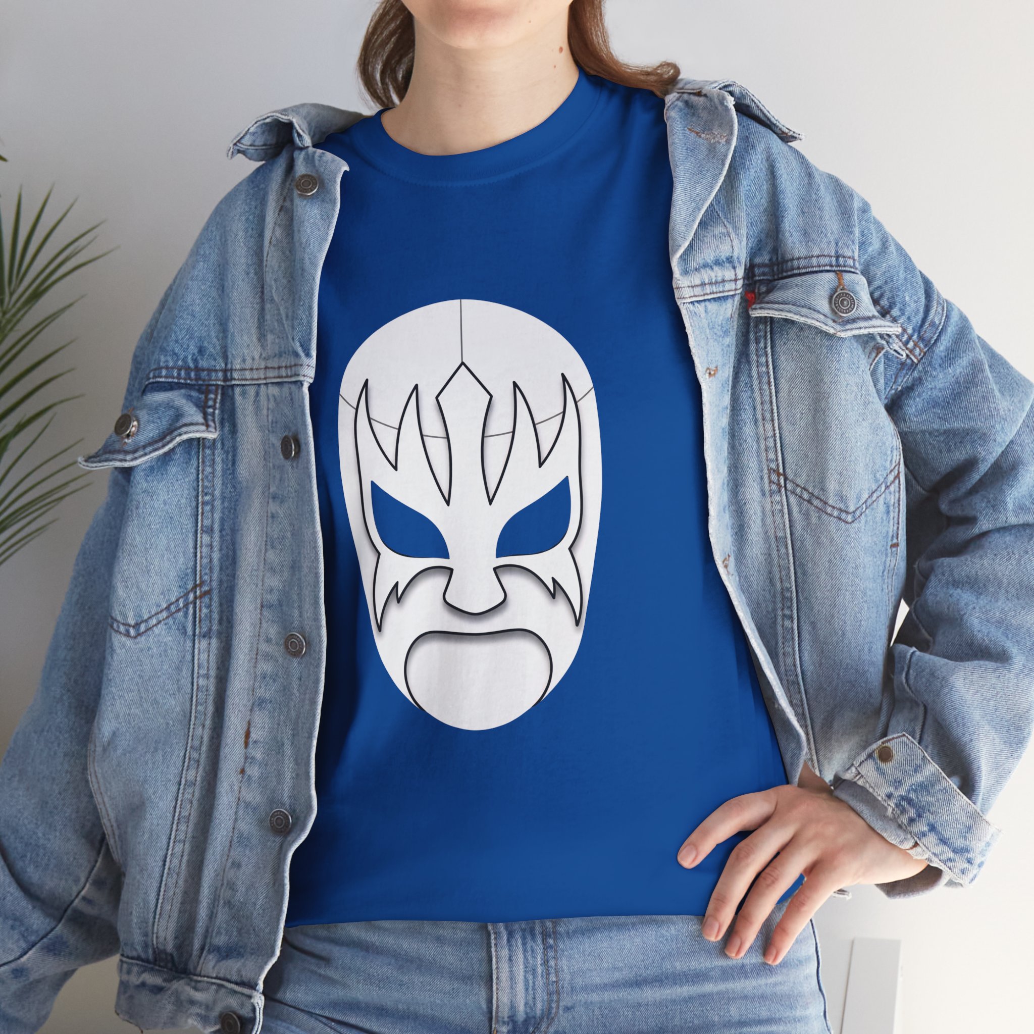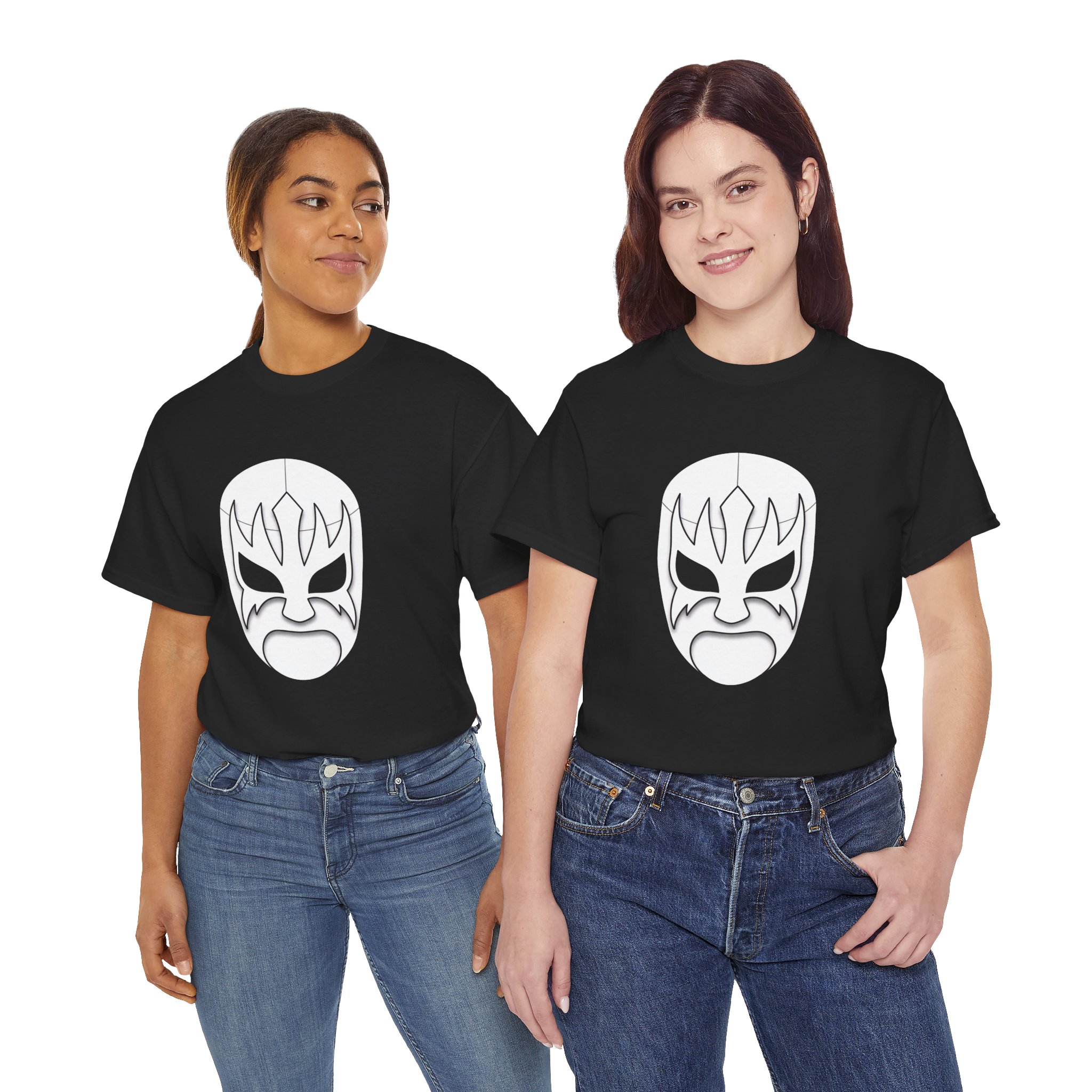This heavyweight tee carries a bold, minimalist wrestling-mask graphic that reads like a silent challenge. The sturdy cotton body and classic crew neck give it a confident, everyday feel — the kind of shirt you reach for when you want your style to do the talking without shouting. Wear it to underground shows, late-night meetups, or while tinkering in the garage. The stark mask sits centered on a deep black field, creating a striking contrast that keeps the look clean and unmistakable. It’s for people who appreciate retro fight-poster aesthetics and low-key attitude: simple, strong, and quietly proud.