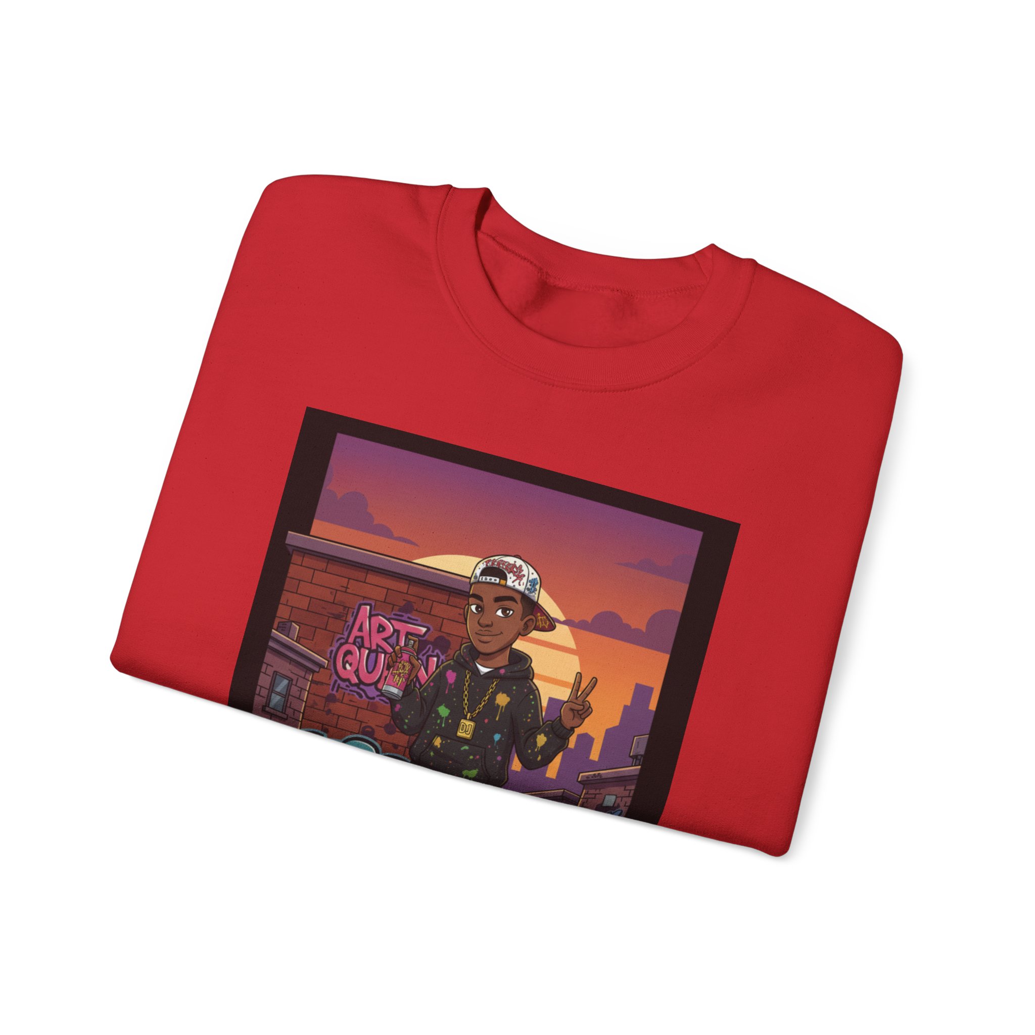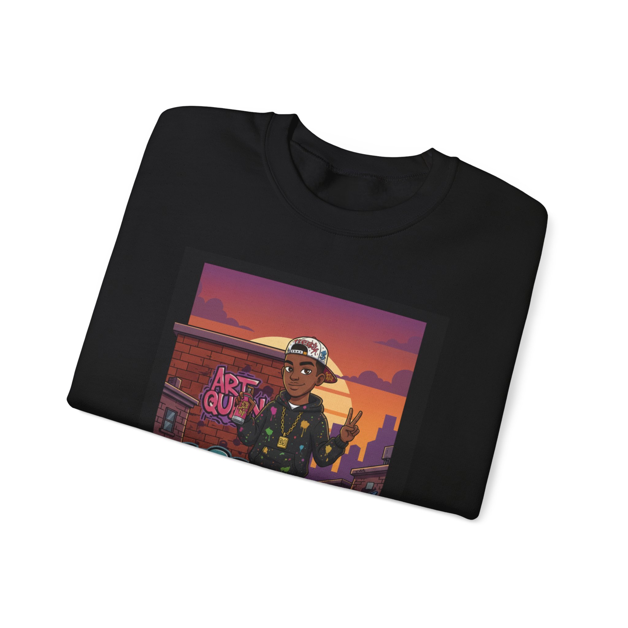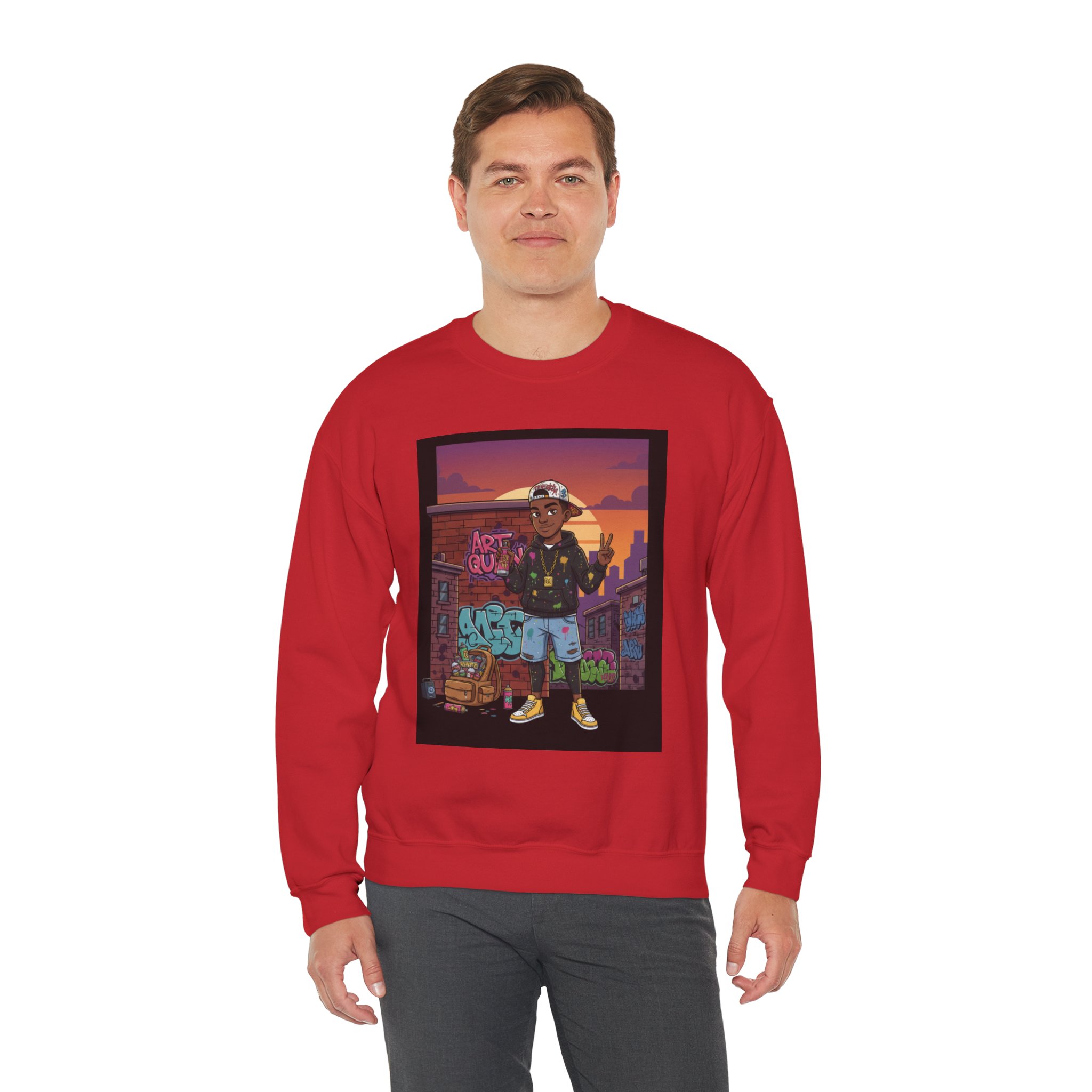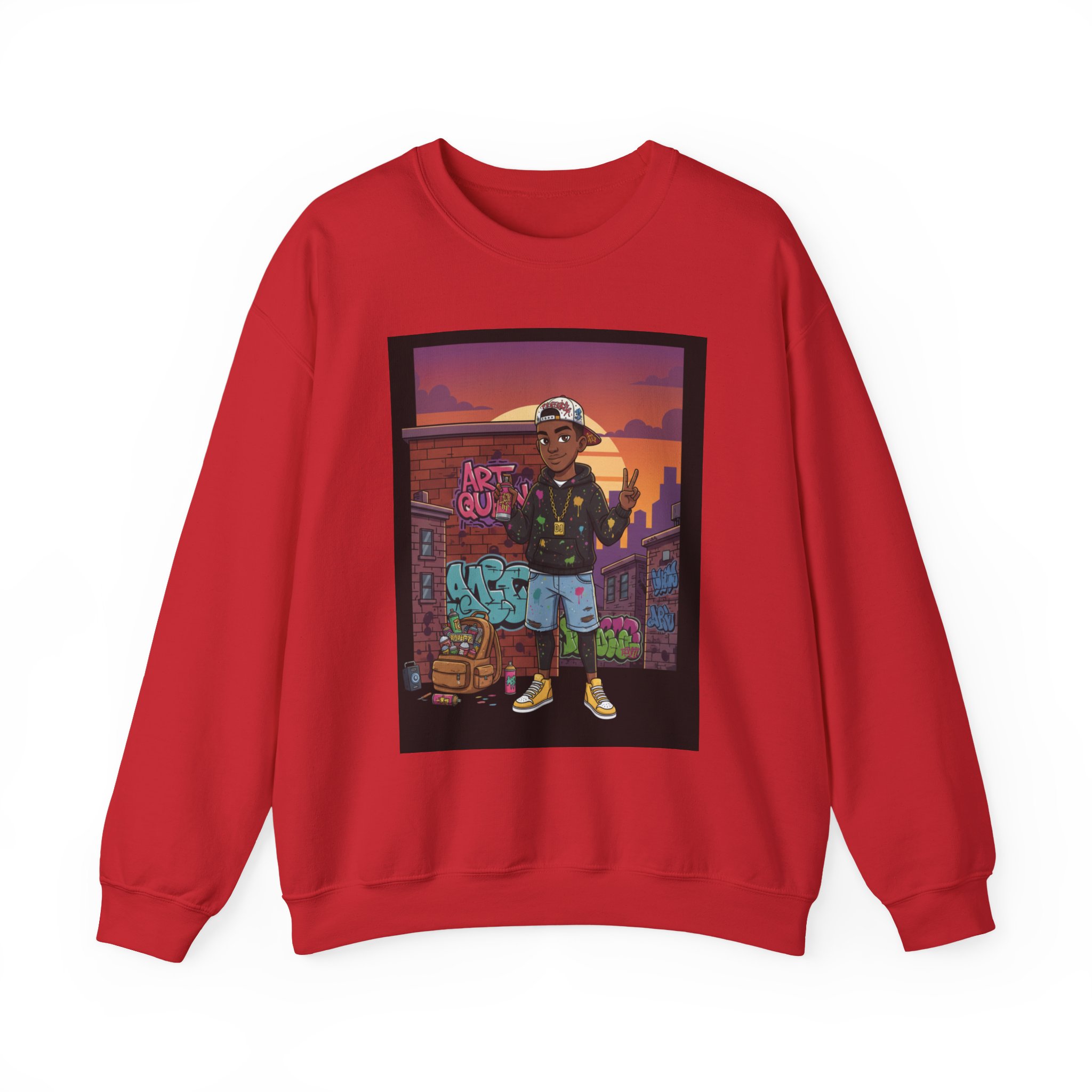 This cozy crewneck carries a streetwise story — a dusk-lit city block, spray‑painted walls, and a young character standing bold in retro sneakers and a bucket hat. The soft, midweight knit wraps you in warmth while the printed art becomes the focal point: colorful, urban, and full of attitude. Wear it on slow evenings walking the neighborhood, layered over a tee for late-night meetups, or when you want an easy piece that reads like your soundtrack and your sketchbook merged. The fabric feels substantial without being stiff, and the clean crew neckline keeps the silhouette simple so the illustration can speak. Ethically sourced cotton and durable double-needle stitching mean this sweatshirt will stay familiar through seasons of wear and stories.